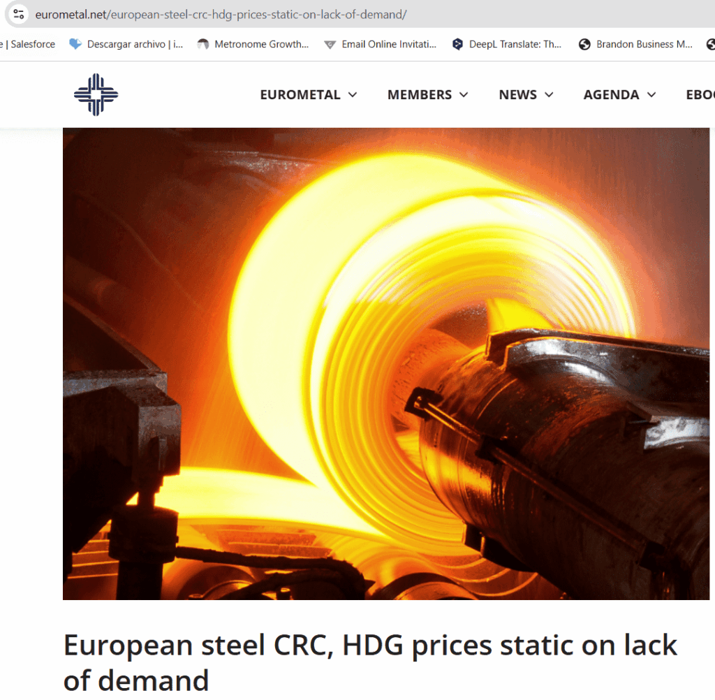 También se habla de un posible exceso de oferta. Las exportaciones de acero europeo hacia Estados Unidos se han visto limitadas por la famosa Sección 232 y por la caída de precios en el mercado estadounidense. Muchos embarques se están desviando hacia Europa. Además, el fortalecimiento del euro está afectando la competitividad del acero europeo en otros mercados internacionales.